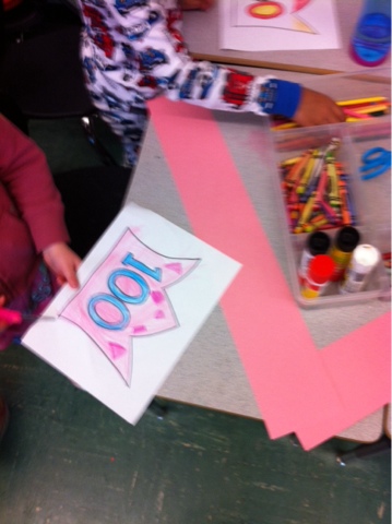 Today was our 100th day of school! It was such a fun (but exhausting!) day. I wouldn't be surprised if your child goes to bed a little early tonight. We started off the day making portraits of ourselves of what we thought we'd look like at 100 years old. I had written down some activities. Randomly throughout the day, I would pick a card and we would do that activity for 100 seconds. We danced the twist for 100 seconds, we tried to hold our breath for 100 seconds, we jogged for 100 seconds, we counted how many times we could touch our head, shoulders, knees and toes for 100 seconds. It was so much fun! We ended the day by making crowns and being proud of how much we've learned already in 100 days of school.